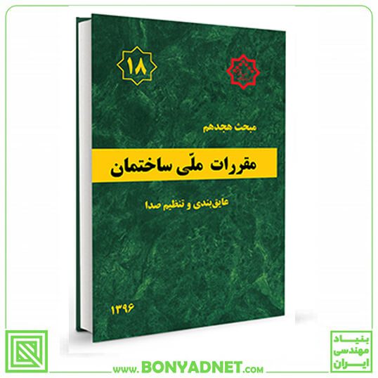 کتاب مبحث هجدهم مقررات ملی ساختمان تحت عنوان “عایقبندی و تنظیم صدا” ، برای نخستین بار در سال ۱۳۷۹ تدوین شد. در این مبحث، پس از بیان شاخصهای آکوستیکی لازم برای درک مقررات، مقادیر نوفه مجاز برای فضاهای مختلف و همچنین مقررات صدابندی هوابرد و کوبهای جداکنندههای مختلف در ساختمان ها با کاربریهای گوناگون عنوان گردید. همچنین روش محاسبه صدابندی یک جدار مرکب و مقادیر عددی صدابندی هوابرد و کوبهای تعدادی از جداکنندهها در جداول پیوست ارائه شدند.