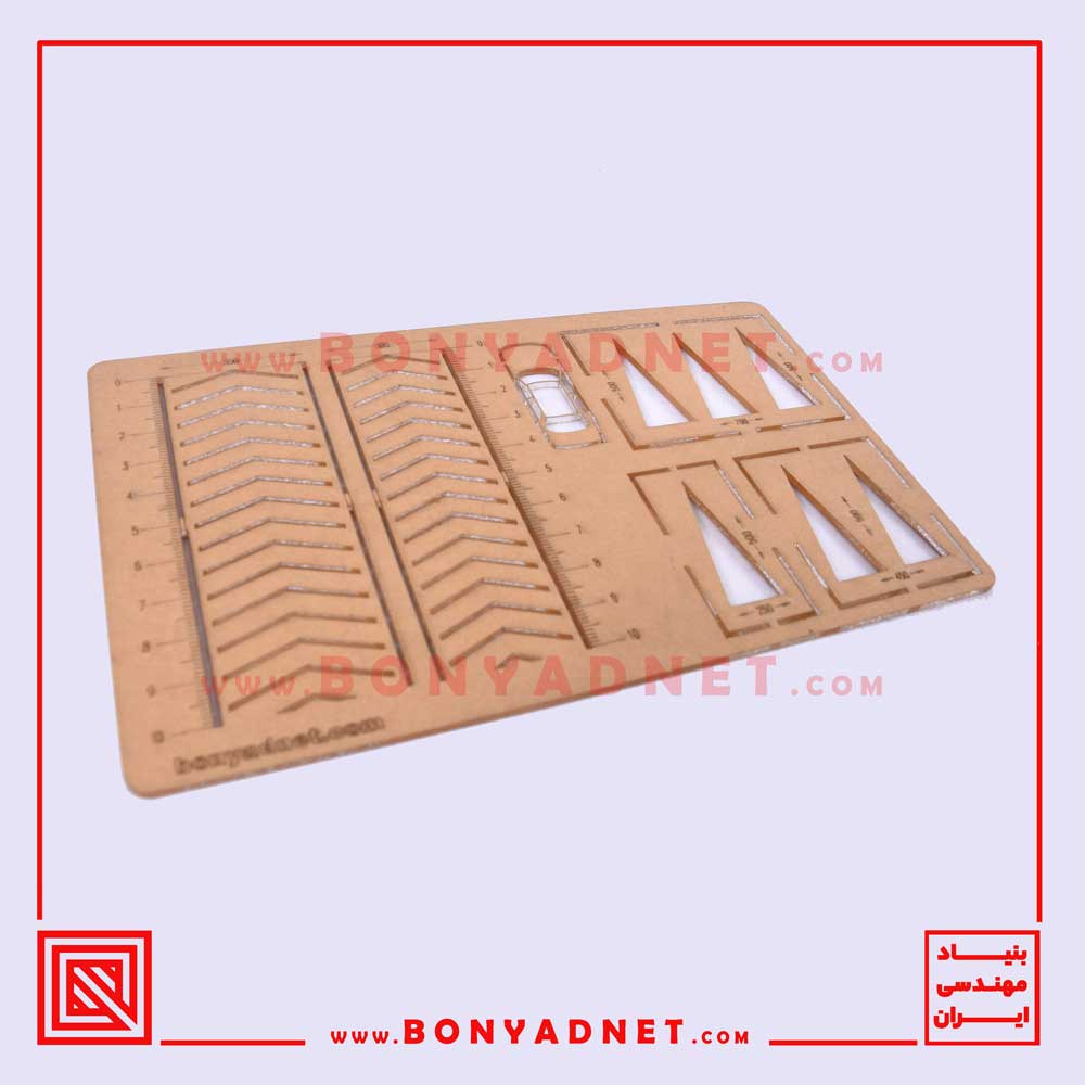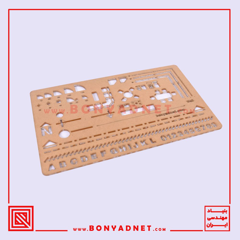 شابلون ها متناسب با اتود ۰/۳ و ۰/۵ طراحی شده اند. کلیه موضوعات قابل استفاده هستند و شیار کوچک یا نا مناسب وجود ندارد. این امر به جهت در نظر گرفتن ضخامت مداد اتود در طراحی شابلون ها و دقت بالای دستگاه برش ( ۰.۰۱ میلیمتر ) و کیفیت درجه یک متریال میسر شده است. با توجه به مقیاس کوچک ترسیمات در آزمون طراحی ( ۱:۱۰۰ ) در صورت عدم رعایت هر کدام از فاکتور های ذکر شده شابلون ها قطعا ترسیمات دقیقی نخواهند داشت. اندازه های بزرگتر شیار ها در شابلون باعث لق زدن مداد شده و اندازه کوچکتر باعث عدم وارد شدن اتود به داخل شیار خواهد شد. همچنین کیفیت انجام برش لیزری و جنس نامرغوب پلکسی گلاس ممکن است باعث اعوجاج و دفرمه شدن شابلون شود. تنظیم درست سرعت و قدرت برش و فوکوس دستگاه برش لیزری برای دقیق شدن نتیجه کار بسیار مهم است. شابلون های طلایی بنیاد نت به دلیل رعایت کلیه موارد ذکر شده در طراحی و تولید آنها، بسیار دقیق و کاربردی هستند. به طرز ماهرانه ای اندازه های اشکال ترسیم شده به همان مقدار مورد نظر خواهند شد. علاوه بر این این شابلون ها به دقت و تمیزی ترسیمات با مداد نیز کمک خواهد کرد. برخی از آیتم های موجود در شابلون های طلایی بنیاد نت به شرح زیر می باشند :